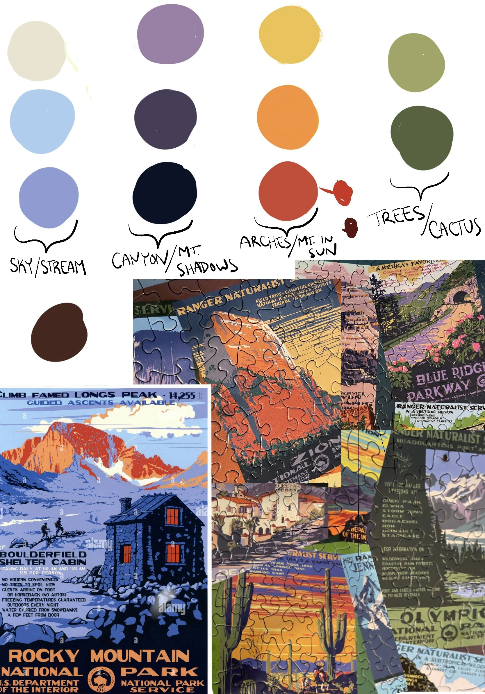 Preliminary color study using National Parks artwork